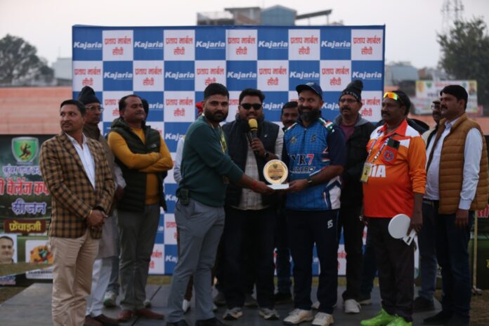 दीपांशु चौहान को उनकी शानदार बल्लेबाजी के लिए प्रताप मार्बल मैन ऑफ द मैच चुना गया। पुरस्कार इंजीनियर आर.बी. सिंह, राजेश सिंह, राकेश सिंह और मोहित सिंह ने प्रदान किया।मैच में अंपायर राकेश सिंह चंदेल और जितेंद्र गुप्ता रहे। स्कोरर बी. कृष्ण कुमार व हर्ष गुप्ता रहे, जबकि कमेंट्री प्रेम कुमार, बालेंद्र कुशवाहा और सौरभ सिंह ने की।
