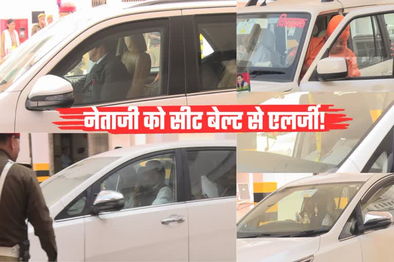 बीजेपी के वरिष्ठ नेता और पूर्व मंत्री बिसाहू लाल सिंह भी बिना सीट बेल्ट लगाए विधानसभा पहुंचे। जब सवाल पूछा गया, तो बोले –